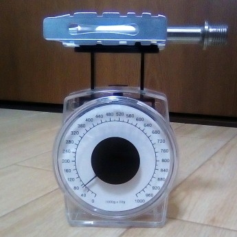 届いたペダルを 測ってみたら 重量は嘘ではないようです。